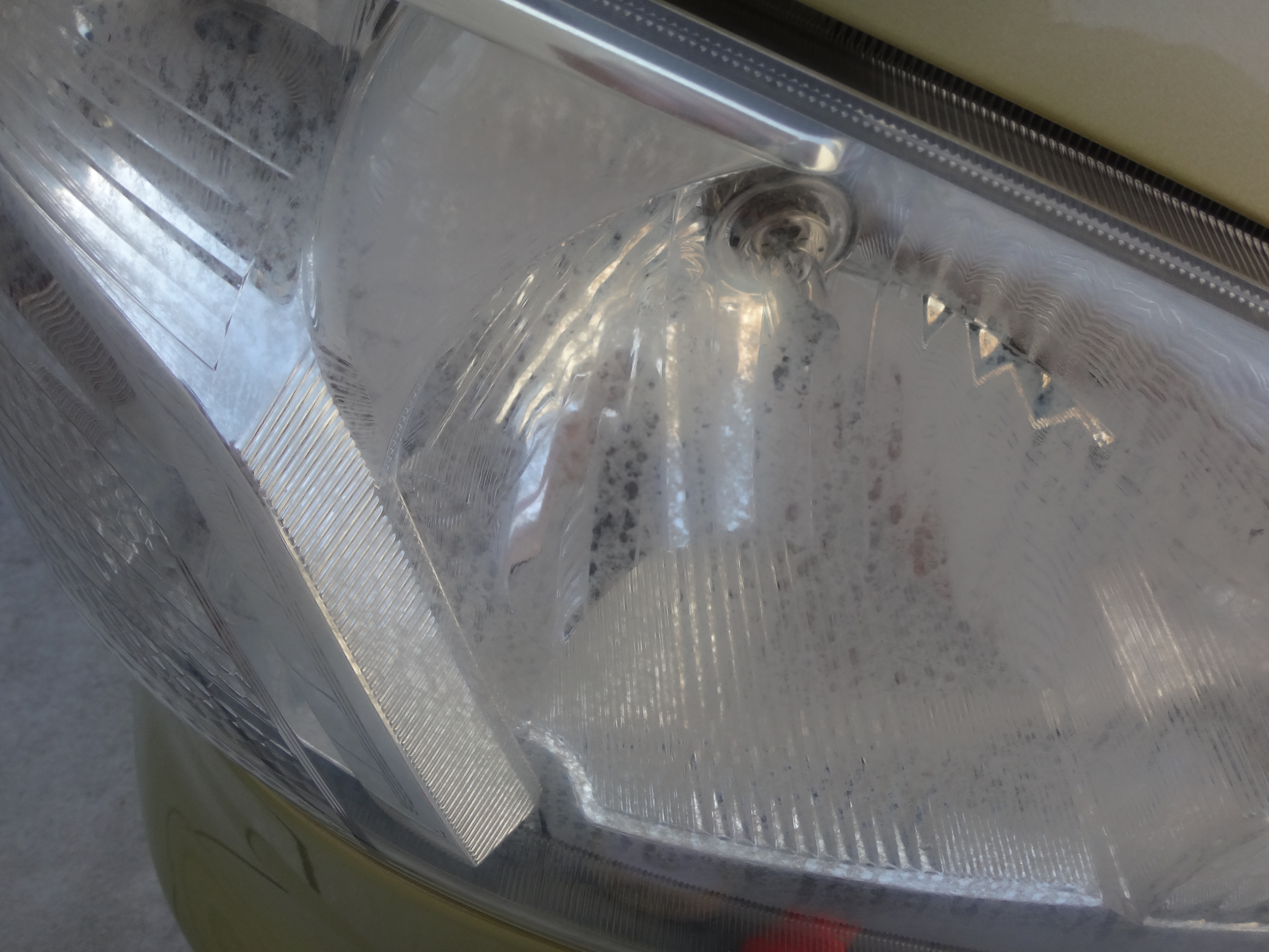 近年のヘッドライトは、ポリカーボネイトというプラスチック素材のレンズが使用されており、このレンズは紫外線や汚れの付着による経年劣化により、クリアなレンズが黄色く変色したり、くすみ等が発生します。